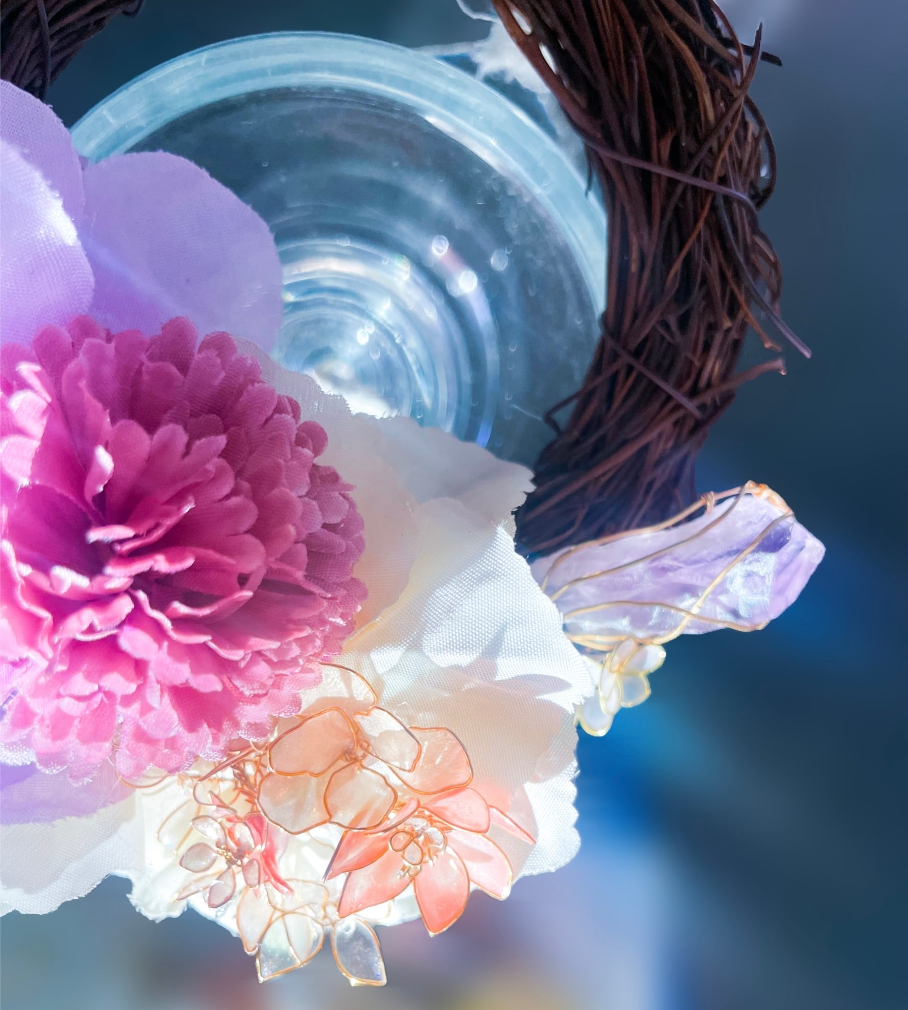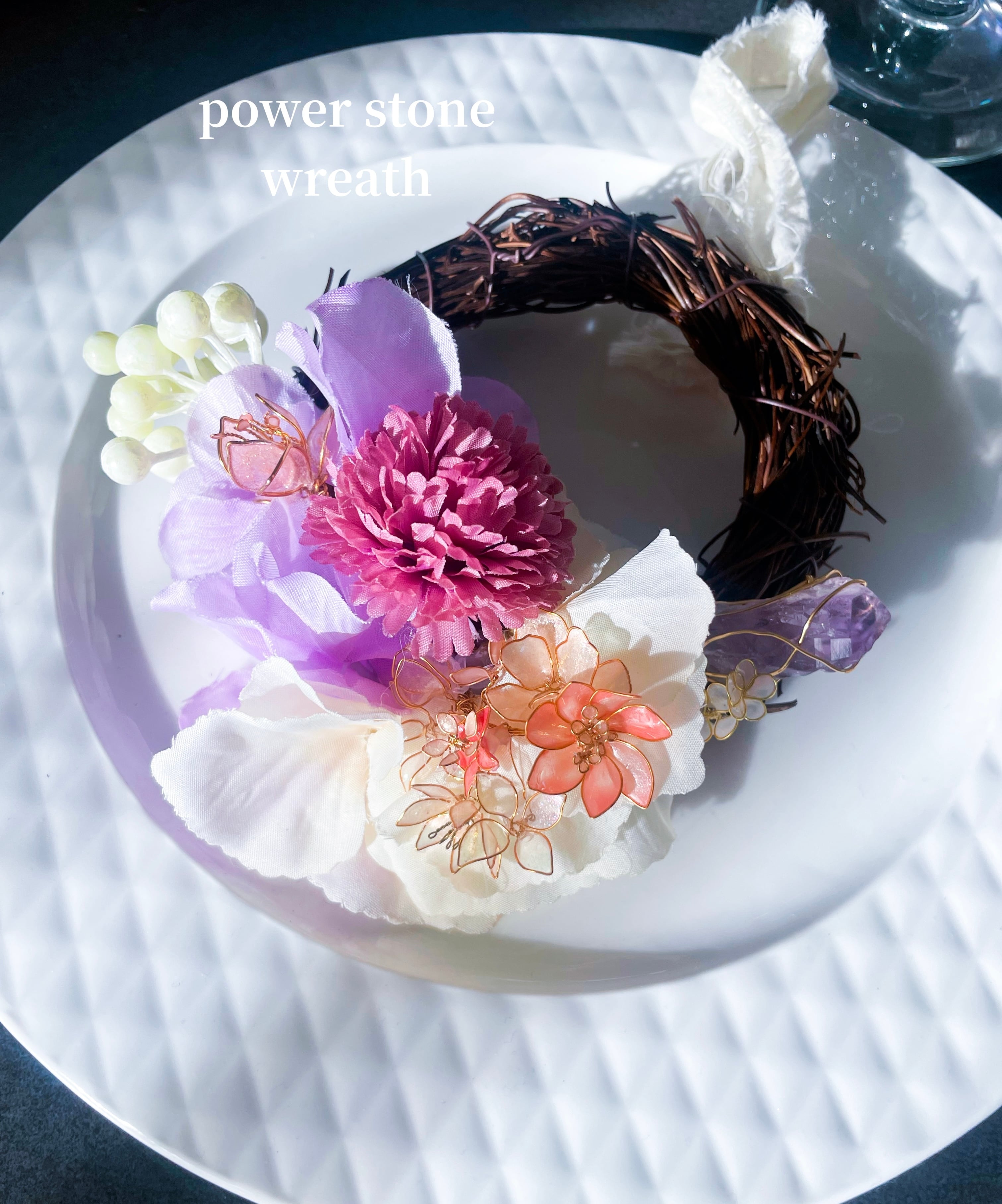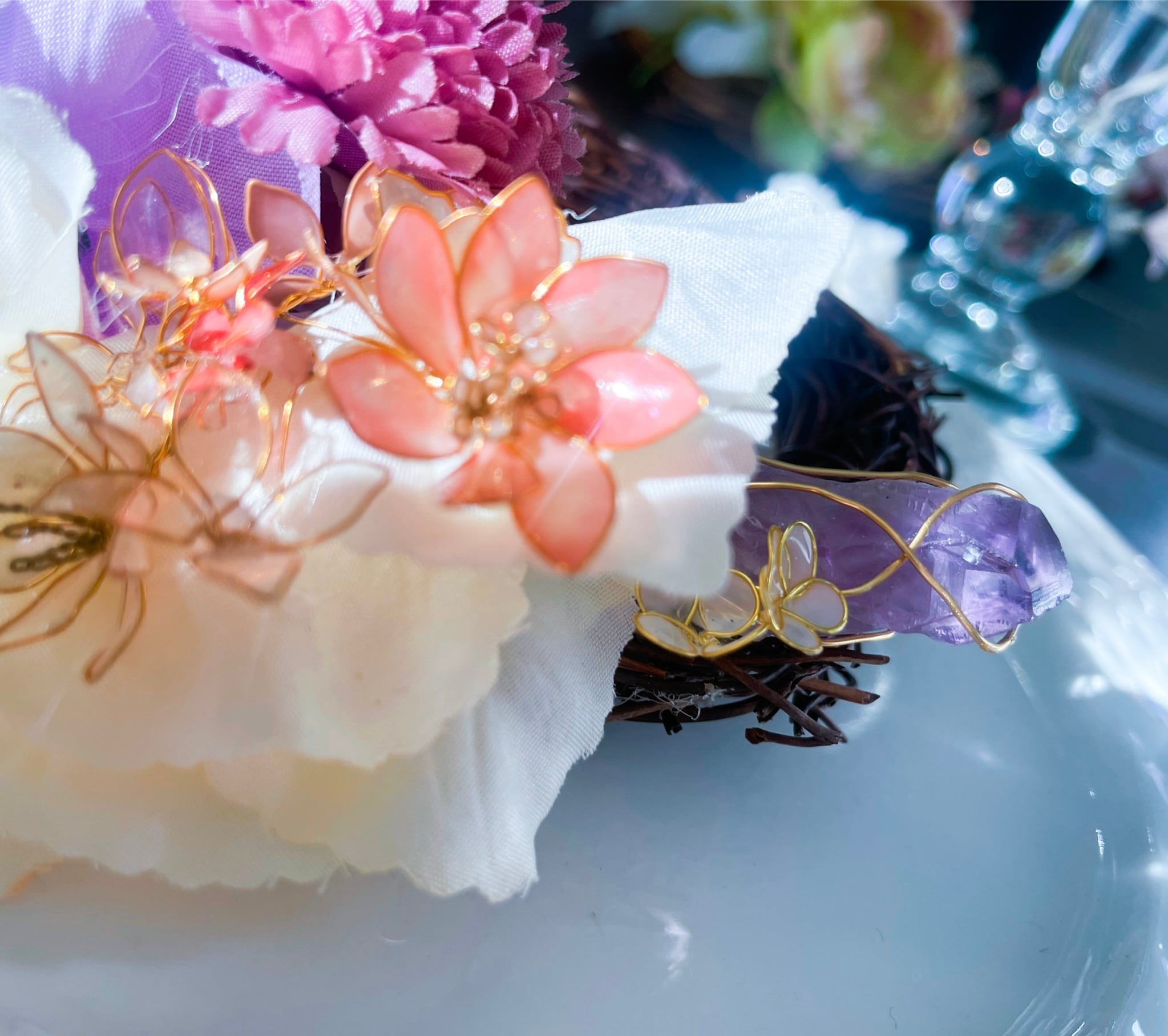 アメジストに、透け感が美しいディップフラワーと