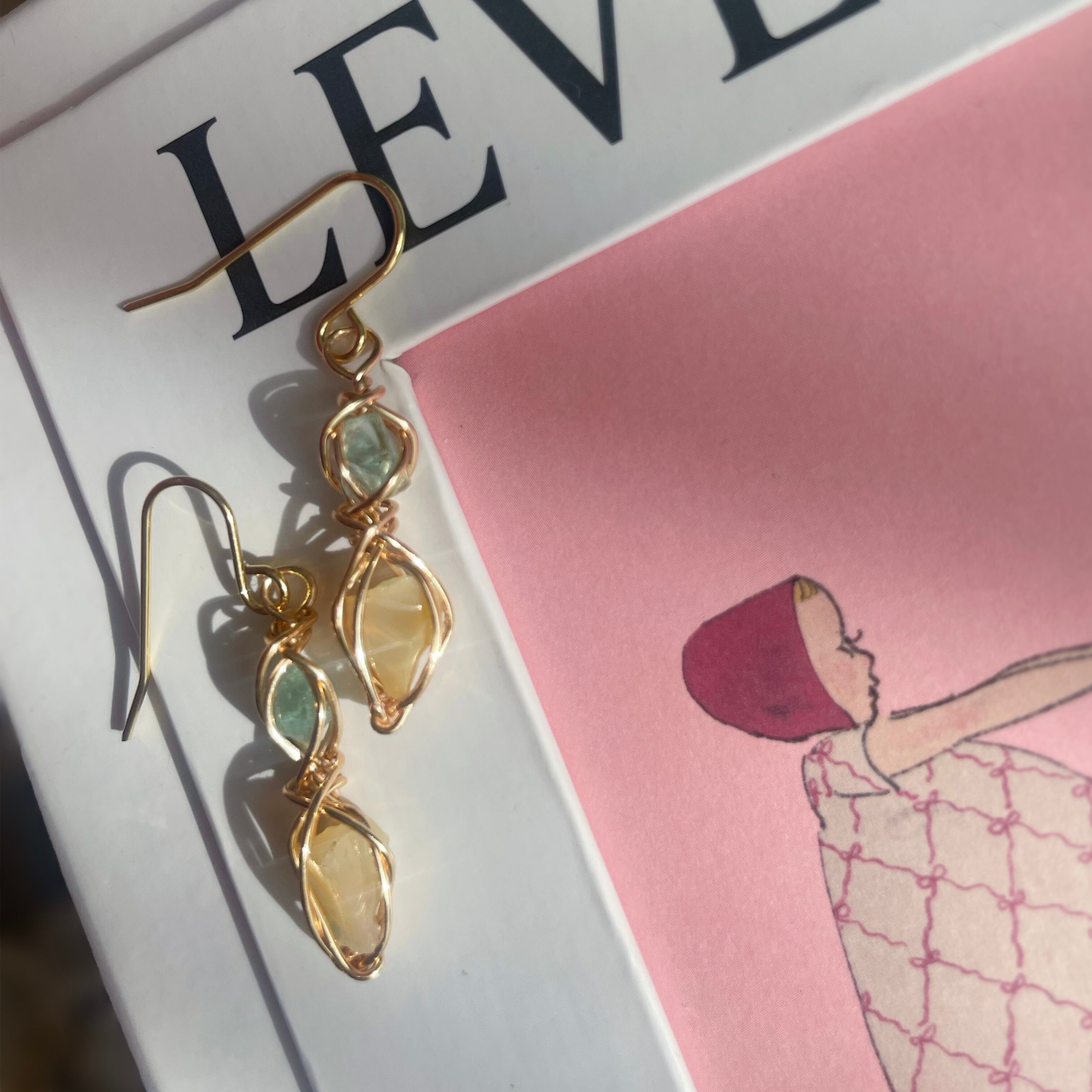 グリーンフローライトとオパールを組み合わせたピアスです。